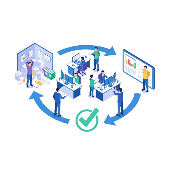 コンタビリタでは、業務フローの可視化から、最適なシステム設計・導入・運用までを一貫支援。